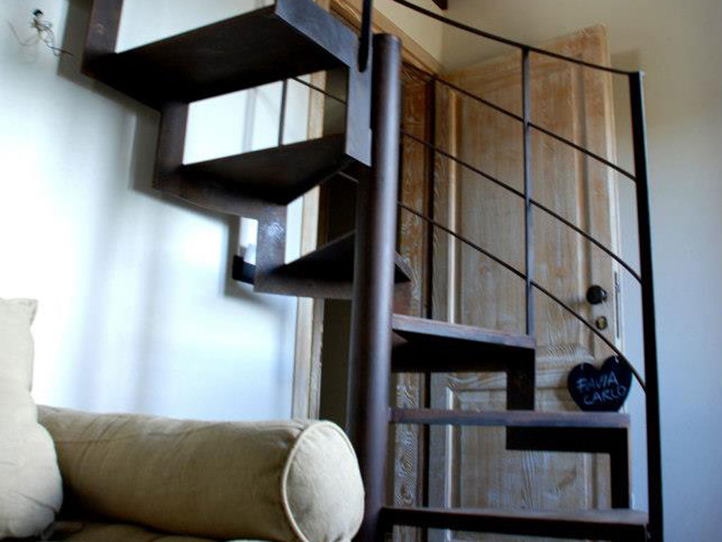 L'area notte, situata su un livello rialzato e accessibile tramite una graziosa scala a chiocciola in ferro battuto, offre un'atmosfera intima e romantica, ideale per le coppie in cerca di tranquillità.